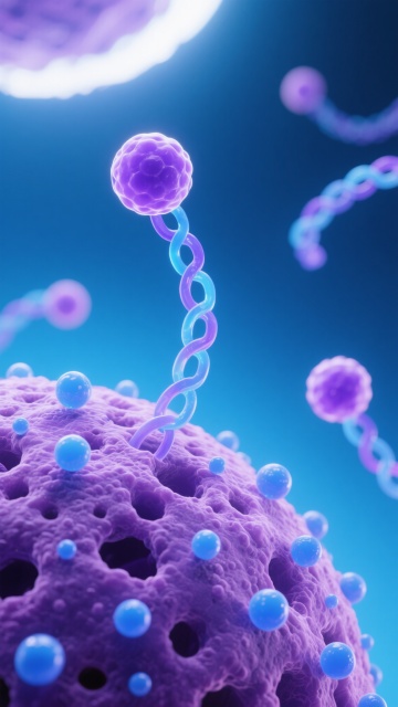 3D渲染风格的病毒微生物特写,多个具有棘突结构的病毒颗粒悬浮于画面中,表面呈现出半透明的水晶质感与细微的凹凸纹理,采用明亮醒目的橙红色调作为主色,搭配暖黄色高光和暗红色阴影,背景为深邃的黑色,点缀着大小不一、散焦的橙黄色光斑营造出梦幻般的景深效果,整体光影柔和且富有层次感,病毒颗粒在画面中分布错落有致,呈现出科学微观世界的神秘与精致。