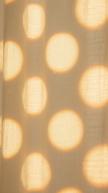 中式风格,画面以温暖的橙黄色调为主,光线从垂落的帘幕间穿透形成纵向光柱,营造出静谧而神圣的氛围,前景是带有自然纹理的浅色平面,光影交错间展现出细腻的材质感,整体构图简洁大气,充满东方禅意的意境美。