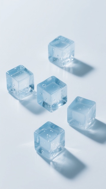 极简风格的3D装饰元素插画,由多个大小不一的半透明蓝色立方体组成,立方体表面带有细腻的渐变光影效果,呈现出柔和的磨砂玻璃质感,整体布局采用不规则的散点式排列,背景为纯白色,营造出干净、通透、轻盈的空间氛围,适合作为现代简约风格的装饰图案使用。
