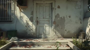 全景构图,一座被遗忘的中世纪石砌钟楼内壁,古老的石灰华墙面从上至下裂开深邃的蛛网纹路,阳光透过穹顶破损的玫瑰窗在墙面上投射出斑斓的彩色光斑,其中一道金色光束恰好照亮墙根处一株从石缝中顽强生长的野蔷薇,墙面上残留着褪色的拉丁文祷文和几处十字形刻痕,部分砖块已松动错位,露出内部含着贝壳的粗糙砂浆,斑驳的光影在厚重的油画画布上形成流动的笔触,整体色调由黎明的青灰向中央的暖金渐变,营造出时间在静默中呼吸的神秘氛围。