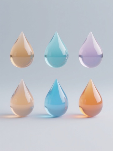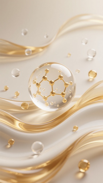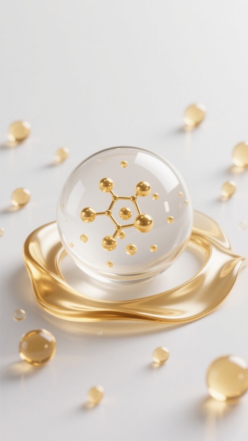 六个规整排布的简约现代风格分子结构素材,每个素材均为透明球体包裹不同排列方式的彩色分子,分子颜色包含橙黄色、琥珀色等渐变色调,球体表面光滑有光泽,整体造型简约,悬浮于纯白色纯色背景中,无任何文字、logo及水印,保持分子排列的几何美感与透明材质的光影质感。