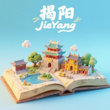软3D风格融合中式元素,微缩艺术呈现郑州地标,粘土质感搭配卡通化设计,趣味十足,书本基底寓意文化传承,整体可爱又富有创意。