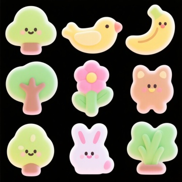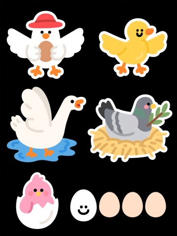 一组四个不同元素的卡通插画集合,每个元素都采用圆润可爱的Q版风格,白色描边勾勒轮廓,内部填充均匀的马卡龙色系。第一个是戴着粉色围巾的白色兔子抱着橙色胡萝卜,第二个是戴着蓝色领结的黄色小鸡捧着金色麦穗,第三个是戴着绿色叶子头饰的棕色小熊举着红色草莓,第四个是戴着红色蝴蝶结的灰色小猫抱着紫色葡萄。所有元素都位于纯色背景上,整体色彩明快柔和,四个插画呈田字格规整排布,保持一致的构图比例和萌系氛围。