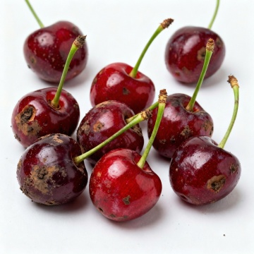 超写实摄影风格,成熟饱满的红色樱桃挂满枝头,翠绿带锯齿边缘的叶片与果实交错,画面整体采用柔和的自然光,背景呈现梦幻的光斑虚化效果,改为晴朗无雨的天气条件,樱桃表面干爽光滑,反射着明亮的阳光,叶片舒展挺立,无水滴痕迹,色彩鲜明饱和,构图保持近景特写,突出果实的质感与细节,整体氛围清新明快,展现阳光下樱桃的新鲜诱人。