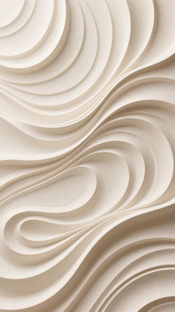极简主义风格的抽象背景设计,以纯白色为基调,画面中由流畅、连续的波浪形曲线和细密的平行线构成主要视觉元素,曲线呈现出柔和的立体渐变效果,带有细腻的磨砂质感,线条边缘光滑且过渡自然,整体构图具有强烈的动态韵律感和现代设计感,光线从左上方柔和洒下,在曲线的转折处形成微妙的光影变化,营造出简洁、高级、宁静的氛围,适合作为现代海报或宣传物料的背景。
