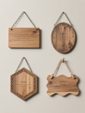 6个不同配色、不同样式、不同材质的吊牌,白色背景,排列整齐,每个吊牌都有麻绳挂绳,吊牌呈长方形,边缘有轻微弧度,具有清晰的光影效果和立体感,材质分别为牛皮纸、光滑卡纸、磨砂塑料、木质纹理、金属质感和布面纹理,配色涵盖棕色、蓝色、绿色、红色、黑色和米色,整体设计简洁干净,具有产品展示的清晰视觉效果。