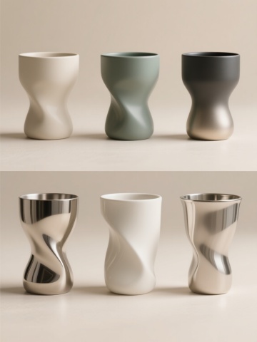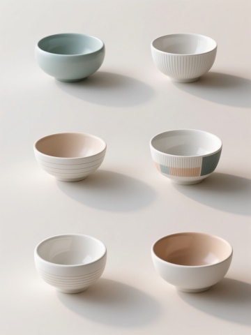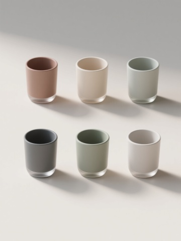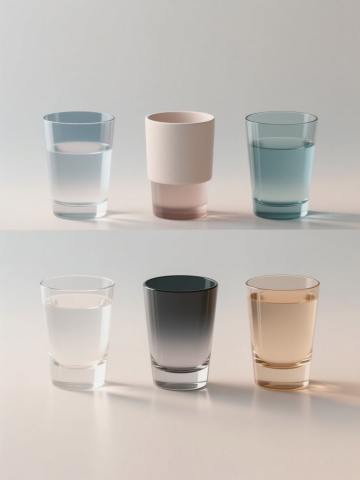 软3D风格的六个不同形状的花瓶,包括细长型、双耳瓶、圆腹瓶等经典器型,排列规整形成对称视觉布局,色彩明亮且采用柔和渐变过渡,表面光滑细腻带有轻微反光质感,整体氛围简洁现代,构图平衡和谐,背景为纯白色以突出主体花瓶的形态美感和色彩饱和度。