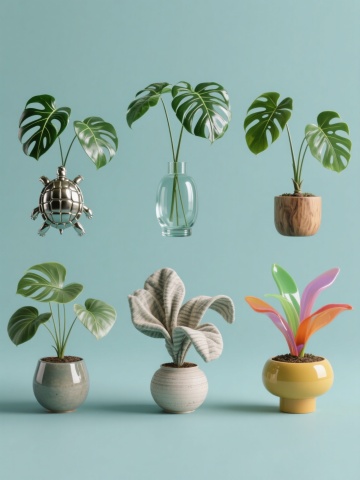 四个完全不同造型的3D风格灵芝素材集合,规整排布在纯色背景上,每个灵芝具有独特的形态设计和色彩方案,保持灵芝的基本生物特征,整体呈现出统一而富有变化的视觉效果。第一个灵芝采用流线型波浪状菌盖,覆盖着光滑的金属质感橙红色表面,搭配细长弯曲的深棕色菌柄;第二个灵芝呈现出多层叠叠的扇形结构,菌盖边缘带有精致的锯齿状花纹,采用柔和的蓝绿色渐变半透明材质,菌柄粗壮且表面有螺旋状纹理;第三个灵芝造型圆润饱满,菌盖表面布满规则的圆形凸起,呈现出温暖的黄色磨砂质感,菌柄短而粗壮,带有自然的结节;第四个灵芝则是不规则的扭曲形态,菌盖边缘向内卷曲,露出内部复杂的褶皱结构,采用深邃的紫色哑光表面,搭配带有分叉的黑色菌柄。每个灵芝都具有清晰的光影效果,高光和阴影的对比增强了立体感,整体构图平衡有序,色彩搭配协调且各具特色。