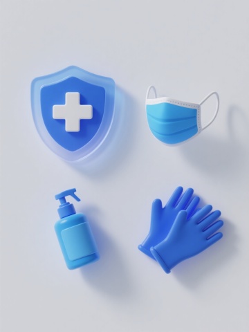 一组六个规整排布的益生菌系列素材集合,每个元素均采用相同的3D立体图标风格,纯净的纯色背景,整体色调以清新明亮的蓝色为主,搭配活力橙黄色点缀。每个图标都具有光滑圆润的边缘、半透明渐变的质感和细腻的高光阴影效果,呈现出通透的玻璃态材质感。第一个图标是蓝色盾牌内包裹着白色螺旋状益生菌和橙色菌球;第二个图标是蓝色胶囊造型,内部可见橙色益生菌菌群和流动的透明液体;第三个图标是蓝色圆形培养皿,里面有多个橙色益生菌球体和白色菌群链条;第四个图标是蓝色水滴形状,内部包含橙色菌球和白色波浪状菌群结构;第五个图标是蓝色六边形蜂窝结构,每个蜂窝格内都有不同形态的橙色益生菌和白色菌群;第六个图标是蓝色试管造型,管内装有透明液体,漂浮着橙色益生菌球体和白色螺旋状菌群。所有图标均保持一致的光影处理,边缘有一圈深蓝色描边,内部有细小的气泡细节,整体风格统一、清新、科技感十足,突出益生菌的健康、活性和保护特性。