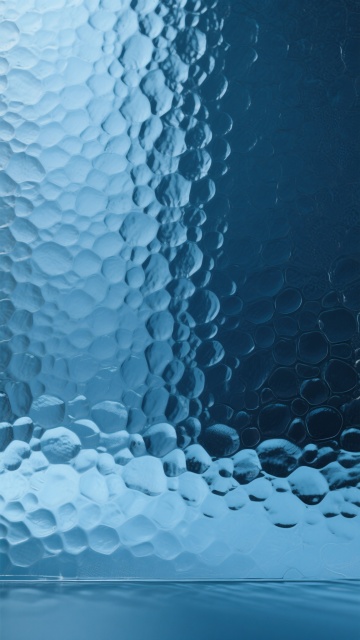 磨砂玻璃质感,表面有规则排列的竖直条纹肌理,光线从上方柔和照射形成明亮的高光区域和渐变阴影,整体呈现通透半透明效果,色彩变换为深邃的宝蓝色调,条纹纹理清晰可见,背景隐约模糊,保持玻璃材质的细腻磨砂触感和光影层次感。
