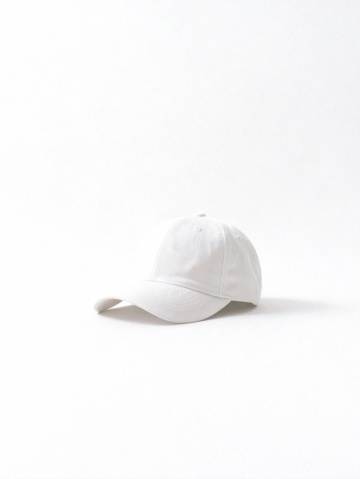 纯白棒球帽,单色设计风,简约主义美学,柔软面料质感,清爽舒适,极简光影呈现柔和氛围。