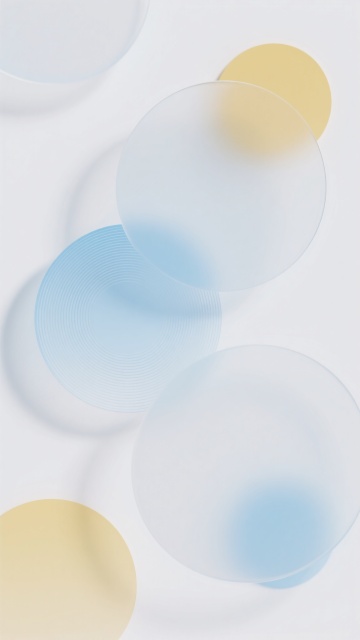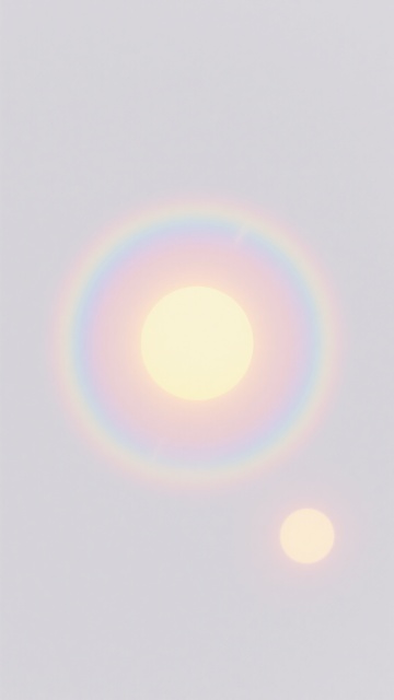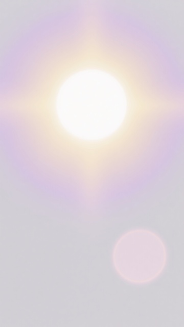 极简风格光效设计,纯净白色背景,中央及右下方分布着柔和发光的圆形光斑,主光斑呈现明亮的暖黄色核心,向外渐变为柔和的粉紫色与淡青色光晕,边缘虚化自然,模拟太阳发光的温暖扩散效果,整体光效轻盈通透,氛围宁静柔和,适合作为背景元素使用,无任何文字或图案干扰。