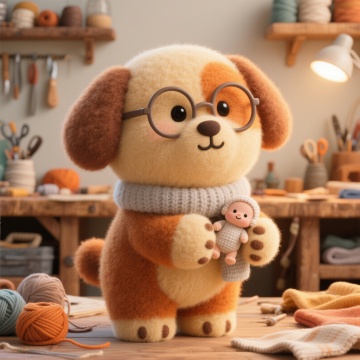 软3D风卡通小狗,粘土质感,可爱温馨,粉色背景衬托童趣。