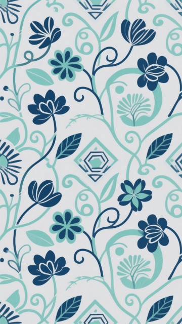 连续无缝的传统纹样背景,纹样为流畅的曲线卷草纹与几何花卉图案的组合,线条纤细均匀,整体呈现淡雅的靛蓝色,背景色为柔和的米白色,纹样与背景形成低对比度的和谐效果,整体风格简约雅致,具有传统东方美学韵味,适合作为装饰性底纹使用。