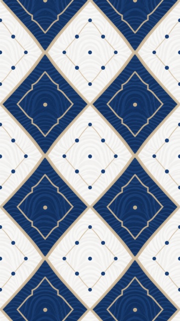 一个由菱形格子组成的无缝图案,菱形格子采用蓝紫色、白色和淡紫色的配色方案,菱形格子的形态为不规则的多边形,每个菱形格子的中心有一个小的十字图案,整个图案呈现出一种几何美感和对称感,适合作为背景或装饰元素使用。