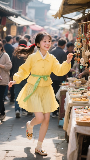 清新中式实景,少女白裙轻舞,阳光洒落古巷,尽显灵动之美。