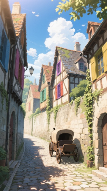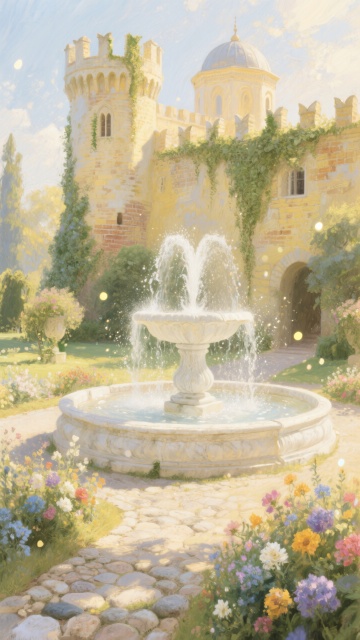 超广角镜头,一座被远古藤蔓半掩的中世纪石砌城堡厚重橡木大门,深褐色木纹中镶嵌着生锈的铁制十字铰链,门上对称分布着四个菱形彩色玻璃窗,中央悬挂着巨大的青铜门环,两侧是爬满常春藤的灰色石墙,门后透出摇曳的烛火暖光,门前石阶上散落着几片深红枫叶,黄昏的金色阳光斜照在门扉上,空气中漂浮着微尘与古老木头的气息,整体色调是沉稳的赭石色与温暖的琥珀色交织,营造出神秘而庄重的历史感。