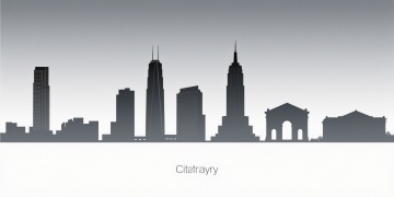极简风格城市地标剪影插画,以纯黑、不同深度的灰色和白色渐变构成,展现多个著名城市的标志性建筑轮廓,采用扁平化设计,线条简洁流畅,无内部细节填充,仅通过剪影形状区分建筑特征,整体呈现出由近及远、层次分明的横向天际线构图,画面背景为纯白色,建筑剪影从底部的深黑色逐渐过渡到顶部的浅灰色,营造出简洁、现代、具有强烈视觉识别性的城市天际线景观。