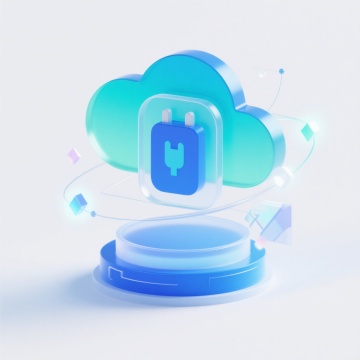 赛博朋克风格的插头图标设计,插头造型融合机械齿轮与电路板纹理,闪电符号采用霓虹蓝发光效果,整体被半透明渐变紫色圆形环绕,边缘带有故障艺术风格的电子干扰线条,背景为深色网格渐变,呈现出未来科技感与工业风的结合,简洁有力的视觉符号,适合科技产品或能源相关主题的标识设计。