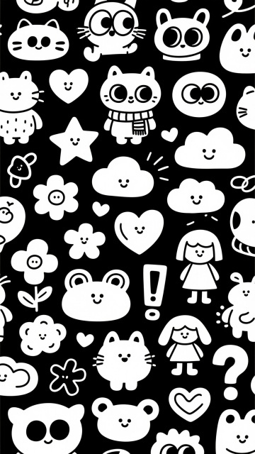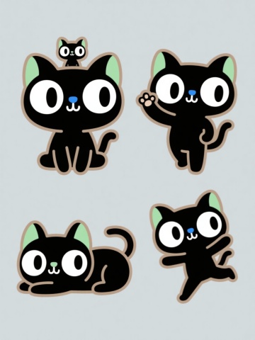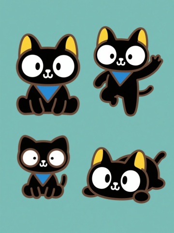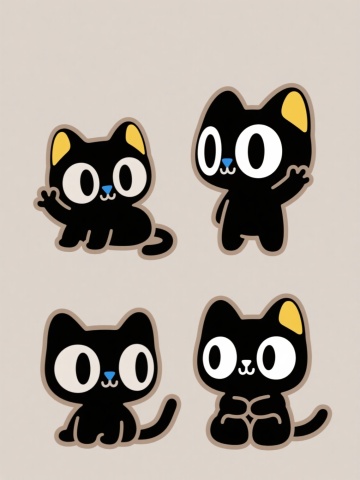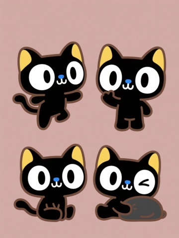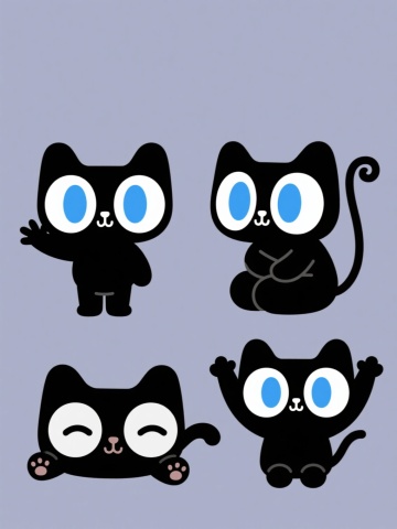 简笔画风格,六只不同造型的小猫,每只小猫都有圆润的头部和身体,大大的眼睛,简单的线条勾勒出细节,姿态各异:一只举着爱心,一只抱着苹果,一只拿着气球,一只抱着枕头,一只挥舞星星棒,一只捧着杯子,周围点缀着小星星、爱心和线条装饰,整体构图采用九宫格布局,线条简洁流畅,可爱治愈,无文字元素。