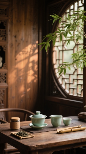 明亮通透的室内场景,柔和的自然光从法式玻璃门洒入,照亮整个空间,营造出宁静、舒适、温馨的氛围。前景中,一位穿着素雅连衣裙的女性侧身坐在藤编椅上,手持书本,姿态放松惬意,脚边散落着一双拖鞋,地面铺有浅色编织地毯。背景是两扇宽大的落地窗,悬挂着带有黑色书法文字图案的米白色亚麻质感窗帘,窗帘轻盈垂坠,随风微拂,书法字体飘逸洒脱,充满东方韵味。房间内陈设简约雅致,一旁的木质边桌上摆放着一盏造型古朴的台灯,光线柔和。窗外可见郁郁葱葱的绿色庭院,增添自然生机。整体画面采用写实风格,光影过渡自然,色彩以米白、浅灰、原木色为主调,温暖和谐,细节丰富,质感细腻,构图遵循三分法,视觉焦点集中在人物与窗帘的互动关系上,传递出悠闲自在的生活情调。