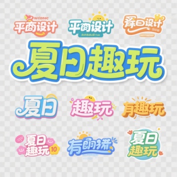 一套6个不同造型的夏季主题系列素材集合,每个素材均为纯色背景,规整排布。保持手绘般流畅自然的曲线笔触风格,"Summer"英文单词采用飘逸灵动的连笔手写体设计,保持原有的书法韵味和优雅形态。每个素材中"Summer"的造型各具特色:有的字母带有海浪般的波浪变形,有的融入简约的太阳光芒线条,有的底部添加轻盈的羽毛装饰,有的字母边缘有细微的虚线轮廓,有的整体呈现上扬的动感曲线,有的则在字母间穿插小巧的夏季元素图形。色彩方面,6个素材分别采用6种完全不同的明亮纯色背景与对应搭配的字体颜色,如天空蓝底白字、阳光黄底深棕字、草绿底白字、珊瑚橙底蓝字、薄荷绿底紫字、浅粉底灰字等,整体保持清新明快的夏季氛围,所有素材排版规整统一,形成协调的系列感。