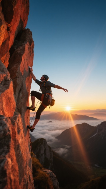 一张充满活力的运动场景照片,展现一位男性运动员在不同运动场景中的动态瞬间。画面采用低角度仰拍,捕捉人物充满力量感的肢体动作和运动姿态。温暖的夕阳从侧后方照射,在人物轮廓边缘形成明亮的金色光晕,同时在地面上投射出长长的影子。天空呈现出清澈的渐变蓝色,点缀着几朵轻盈的白云。人物穿着运动背心和短裤,脚上是专业的运动鞋,肌肉线条在运动中紧绷而富有爆发力。地面根据不同运动场景变化,可能是湿润的柏油跑道、红色的塑胶田径场、绿色的草地或山间小径,表面反射着阳光的光泽。背景可以是城市天际线、郊外的树林或山间的风景,营造出开阔而充满能量的氛围。整体色调以金色、橙色和蓝色为主,高对比度,清晰的细节,展现运动的速度感和力量美,捕捉运动中最具动感和张力的瞬间。