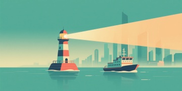 正面视角的大型货轮航行在蔚蓝海面上,船头撞开白色浪花,船身装载着红、黄、蓝、绿彩色集装箱,天空中飘着蓬松白云和飞翔的海鸥,采用扁平化插画风格,色彩明快饱和,线条简洁流畅,海浪呈现规律的波纹纹理,整体画面充满航海的活力与自由氛围。