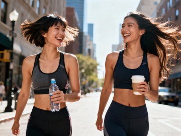 不同人物在城市滨水步道上跑步的照片,明亮自然光下的写实风格,人物穿着运动服,姿态自然舒展,背景有现代城市天际线、护栏和水域,整体色调清新明快,画面捕捉运动中的动态感和活力氛围,构图注重人物与环境的和谐融合,光影清晰柔和,展现不同跑步者的专注神情和多样运动姿态。