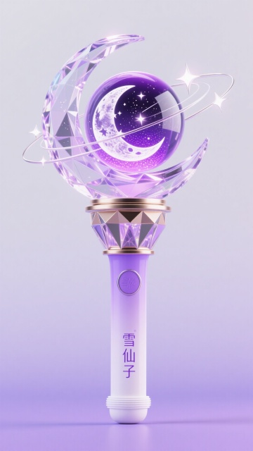 水晶月牙环抱星球迷宫,「雪仙子」三字随星河流转,紫白渐变握柄似凝结的月光,点亮时便将整片宇宙的温柔握在掌心。
