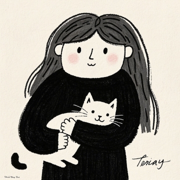 卡通猫咪拟人化书写,插画风设计,噪点效果增添可爱感。