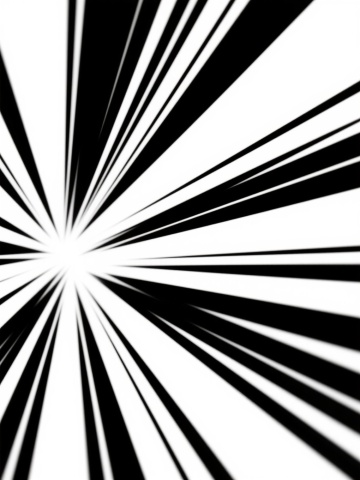 放射状构图的3D立体几何图形,以黑色为背景,白色为中心向四周扩散的尖锐线条,线条呈现出渐变的光影效果,具有金属质感的平滑过渡,营造出强烈的视觉冲击力和未来科技感,整体风格简洁现代,具有抽象艺术的设计感,线条粗细不一,排列有序,形成动态的视觉引导,画面中央留有圆形空白区域,适合放置核心信息,整体设计符合极简主义美学,具有高度的信息传达效率。