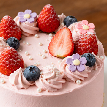 4款不同外观样式配色的圆形奶油蛋糕,白色背景,整齐排列成两行两列。每个蛋糕都有细腻光滑的奶油表面,顶部装饰着不同种类的新鲜水果,包括草莓、蓝莓、覆盆子等,边缘有精致的奶油花纹和水果切片装饰,整体呈现出清新、甜美、高质感的3D写实风格,光影柔和,色彩鲜艳,细节丰富,具有强烈的食欲感和视觉吸引力。