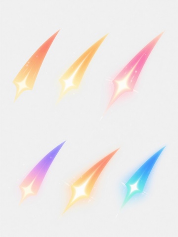 6个不同造型的激光元素集合,每个激光元素拥有独特的颜色和形态,保持数字艺术风格,明亮的发光效果,流畅的线条和粒子效果,纯色背景,整体色彩变换,激光元素内容规整排布,视觉层次分明,信息传达清晰,设计感强,符合现代科技感审美,适合作为系列素材使用