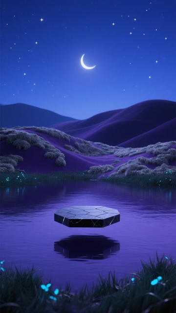 夜晚户外场景,深邃的深蓝色夜空点缀着璀璨繁星和壮丽的银河光带,几缕深色云彩漂浮其间,地平线处有淡淡的橙紫色霞光。画面中央是一个大型的米黄色帆布帐篷,帐篷顶部有尖顶装饰,内部透出温暖的黄色灯光,帐篷前摆放着两张木质椅子和一张小圆桌。帐篷周围的绿色草地上点缀着几处燃烧的篝火,火焰呈现橙红色,散发着温暖的光芒。前景是由大块灰色石板铺成的小径,蜿蜒通向帐篷。整体氛围宁静而温馨,具有高度写实的3D质感,光影对比强烈,高光和阴影细节丰富,色彩和谐统一,营造出梦幻般的野外露营夜景。
