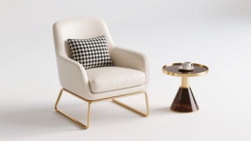 一张高品质家具产品展示海报,白色简约背景,上下两行对齐排列共4个不同设计的沙发。第一行左侧是米白色亚麻布艺三人沙发,带有两个方形靠垫,实木细腿;第一行右侧是深灰色绒布双人沙发,低矮扶手,金属圆柱形支撑脚。第二行左侧是焦糖色皮革单人沙发椅,弧形靠背,黄铜包边装饰;第二行右侧是天蓝色丝绒贵妃榻,流线型设计,带金属支架。所有沙发均采用3D渲染效果,表面有细腻的材质纹理和柔和光影,高光处有轻微反光,阴影自然过渡,整体呈现现代简约风格,视觉层次清晰,信息传达直接,突出家具的质感与设计感。