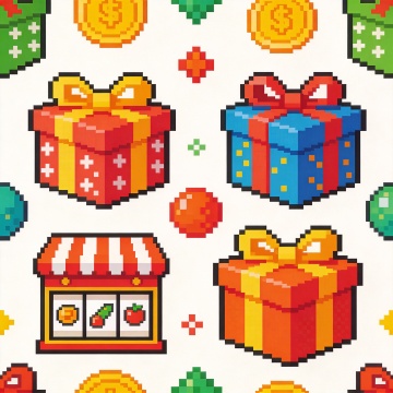 像素风红方块,卡通感十足,叠加体积层次,噪点纹理点缀,节日氛围浓厚。