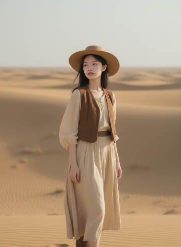 沙漠中,古典舞者身着国潮服饰,飘带飞扬,尽显民族优雅与唯美。