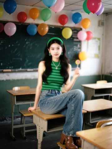多巴胺穿搭。明亮花鸟市场,在巨型鱼缸边。糖水片