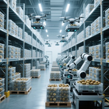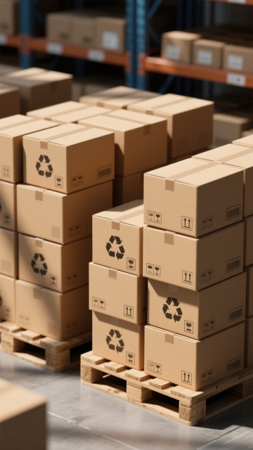 超写实主义摄影风格,高清晰度,明亮自然光从顶部天窗和两侧高处窗户均匀洒落,光线柔和无强烈阴影,整体色调以工业灰、金属银、纸箱棕黄为主,辅以局部亮色点缀。纵深构图,中央是洁净光滑的浅灰色环氧地坪通道,两侧高耸的金属仓储货架整齐排列至画面尽头,货架上堆满不同尺寸的棕色纸箱,部分纸箱贴有蓝色或黄色胶带标签。不同样式的现代化仓库内部场景,保留金属货架结构和整齐堆叠的纸箱核心元素,可替换为具有不同布局(如U型货架、多层阁楼式货架)、不同仓储设备(如叉车、传送带)或不同货物类型(如塑料托盘、金属容器)的仓库环境,通道尽头可设置不同的墙面设计或仓库门样式,保持空间的通透感和工业仓储的秩序感,画面干净整洁,细节丰富,具有强烈的空间纵深感和真实的材质质感。