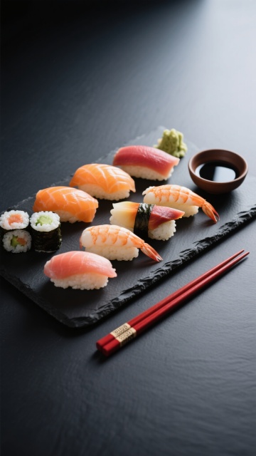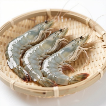 写实风格美食摄影,特写镜头下的黑色圆形瓷盘,盘中整齐排列着五只橙红色煮熟的鲜虾,虾身饱满有光泽,虾头点缀着黑色胡椒粒,虾须自然舒展,盘边装饰着翠绿的迷迭香枝叶和两块切片青柠,整体构图呈三角形视觉引导,主色调为橙红、墨黑与翠绿的对比色搭配,侧上方柔和的柔光照射,在虾身上形成明亮的高光和细腻的阴影,背景变换为木质餐桌,桌面上散落着几片迷迭香叶子和少许白色粗盐颗粒,营造出温馨自然的家庭烹饪氛围,画面质感细腻,细节清晰,色彩饱和,光影层次丰富,突出海鲜的新鲜与美味。