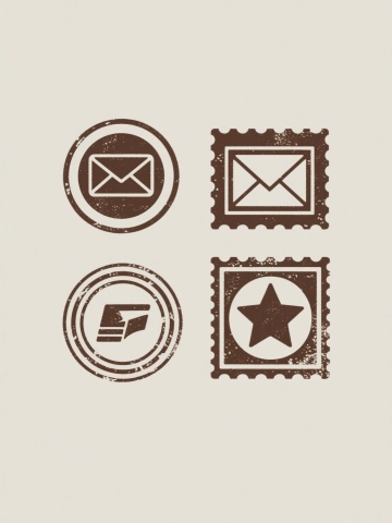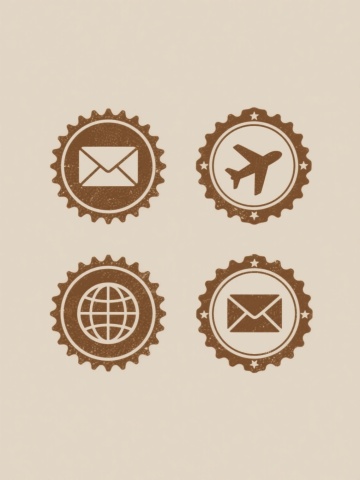 四个完全不同的坐标系列素材集合,每个素材为纯色背景上的简约扁平化图标,第一个是红色背景上的黑色信封图标,第二个是蓝色背景上的黑色电话图标,第三个是绿色背景上的黑色时钟图标,第四个是黄色背景上的黑色地图图标,所有图标均为纯黑色填充,边缘光滑无笔触,圆形或类圆形轮廓,底部有环形装饰,四个素材规整排布在同一画面中,保持相同的风格和元素类目。