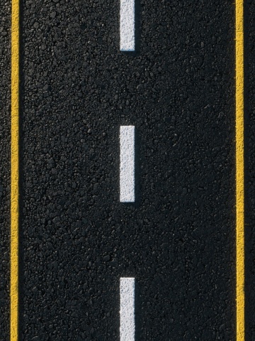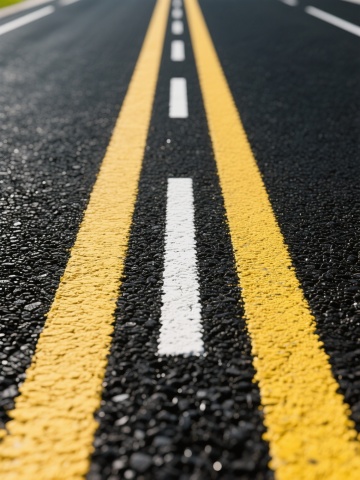 一张沥青材质的道路纹理图,道路中间有白色的虚线分隔线,道路两侧有白色的实线边缘线,整体呈现出一种写实的风格,路面具有清晰的颗粒感和质感。