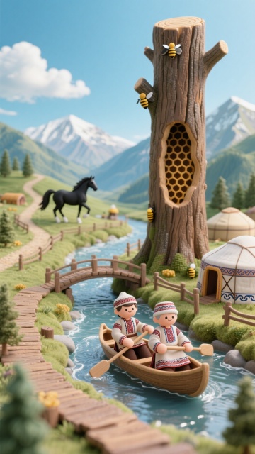 梦幻卡通3D微缩粘土风,温馨小屋与童话人物,营造童趣盎然的节日氛围。