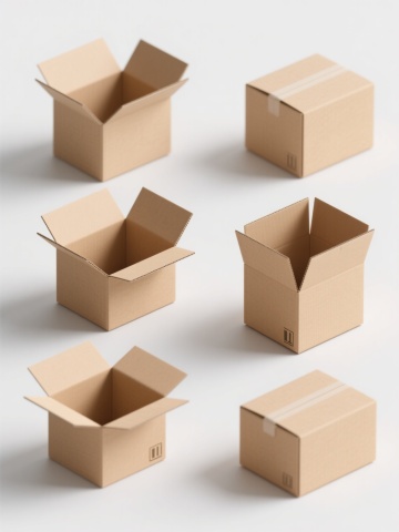 写实风格3D渲染,多个堆叠的棕色瓦楞纸箱整齐排列在木质托盘上,纸箱表面印有回收标志和各类物流标签,整体呈现出仓库或物流场景的专业感,光线明亮柔和从正面偏上方照射,形成自然的阴影和高光,展现出纸箱的材质纹理和立体感,画面构图均衡,物体排列有序,营造出高效、规整的仓储氛围,保持原有的物流仓储主题和写实3D风格,变换纸箱堆叠的组合方式和托盘的排列形态,保留清晰的材质表现和光影效果。