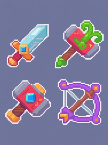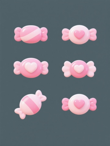 像素艺术风格,一系列6个不同配色、不同样式、不同材质的「糖果」造型,规整排布,整体造型简约现代,纯色背景,无任何文字,无logo,无水印,每个糖果具有清晰的像素块构成,边缘锐利,色彩鲜明,保留像素艺术特有的颗粒感和复古电子游戏视觉风格,糖果样式包括条纹、波点、纯色、双色拼接等多种设计,材质感通过像素色块的明暗对比表现,整体构图平衡对称,视觉层级清晰,信息传达高效,符合简约现代的设计感。