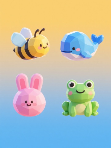 一组四个3D渲染的甜点系列素材,保持相同的卡通可爱风格和规整排布,每个甜点具有不同元素内容,整体色彩变换但保持柔和渐变色调,元素类目为甜点,包括不同造型的蛋糕、冰淇淋、马卡龙和甜甜圈,每个甜点都有光滑的表面质感、圆润的形状、立体感的装饰和细腻的光影效果,背景为纯色,整体呈现出甜美、梦幻、欢快的氛围,所有元素清晰可辨且布局整齐。