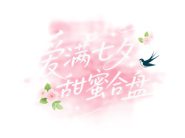 梦幻插画风,浪漫七夕主题,大字设计融入花鸟元素,营造温馨节日氛围。详情