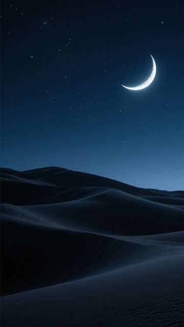 渐变深邃的夜空,深邃的靛蓝色至墨黑色的渐变背景,点缀着明亮的星星,几颗较大的星星散发着柔和的光芒,月亮挂在天空一侧,呈现出皎洁的白色,月光柔和地洒下,云层变得更加朦胧,呈现出淡淡的蓝灰色,整体氛围宁静而神秘,高清写实摄影风格,光线柔和,细节清晰,构图简洁,垂直画幅。