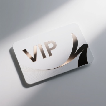 一张会员主题的卡片设计,采用白色背景,不同配色和不同样式的会员主题元素,整体呈现出简约而现代的设计风格。卡片为矩形,边缘有柔和的圆角处理,表面具有细腻的金属质感光泽,光线从左上角照射下来,在卡片右下角形成自然的阴影效果,增强了立体感。卡片正面中央位置有醒目的“VIP”文字,字体为无衬线体,字形饱满,边缘清晰,采用与卡片主体不同的配色,形成鲜明对比。卡片右侧有一个抽象的会员主题元素剪影图案,图案线条流畅,造型简洁,与“VIP”文字形成良好的视觉平衡。卡片左下角有一些细微的斜向线条纹理,增加了卡片的细节感和精致度,整体设计注重视觉层级,信息传达高效,符合会员主题的尊贵感和专属感。